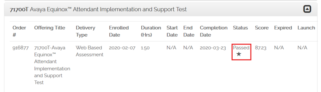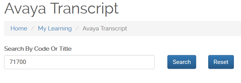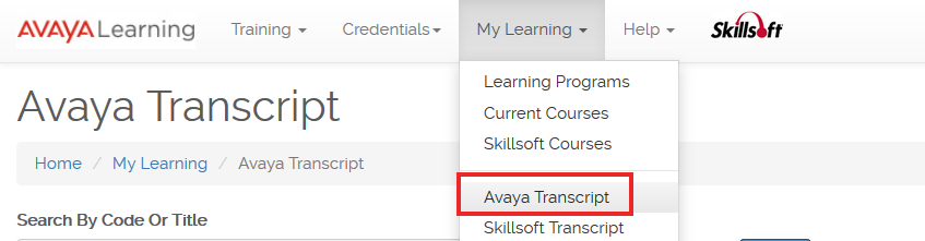 Select “Avaya Transcript” under the “My Learning” dropdown
