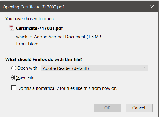 to download the certificate.